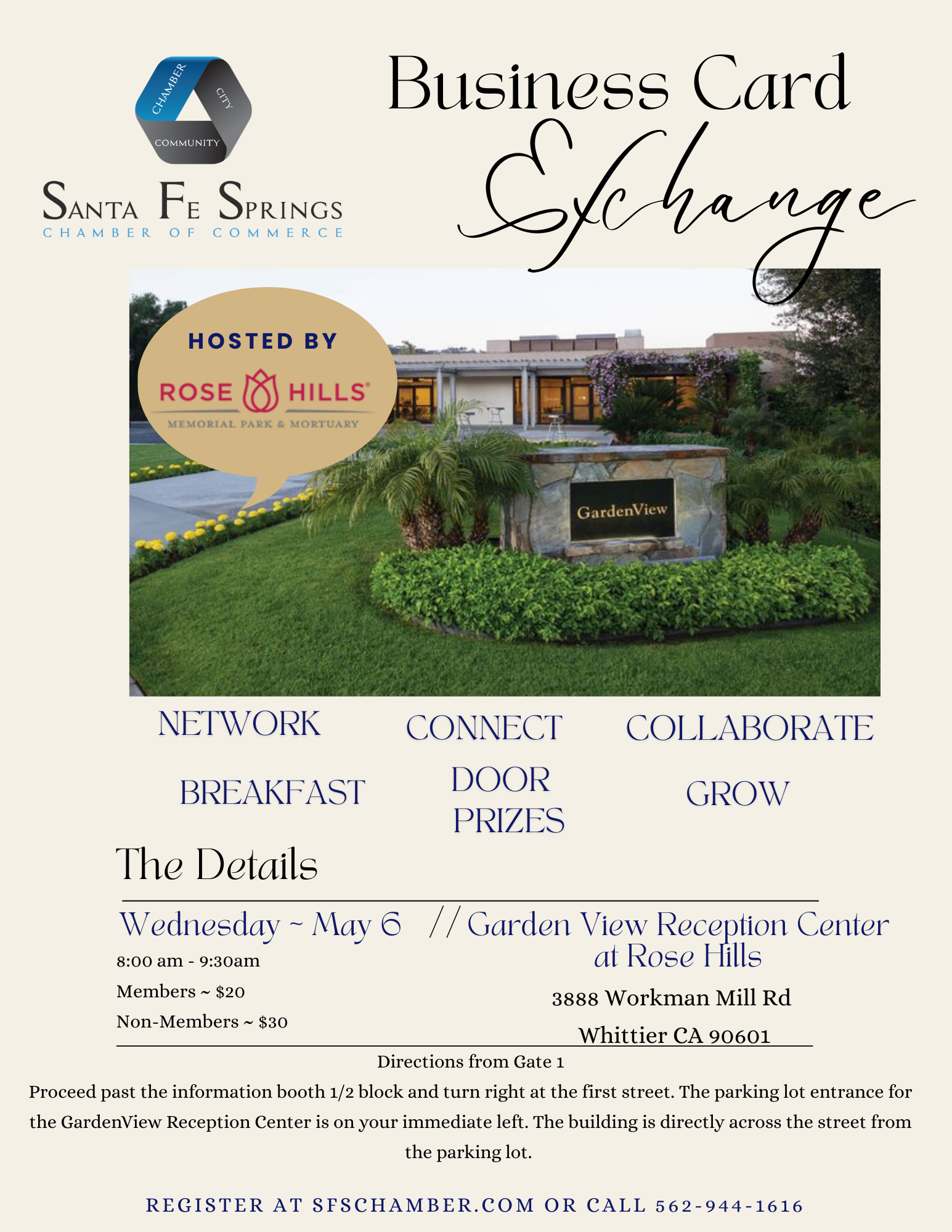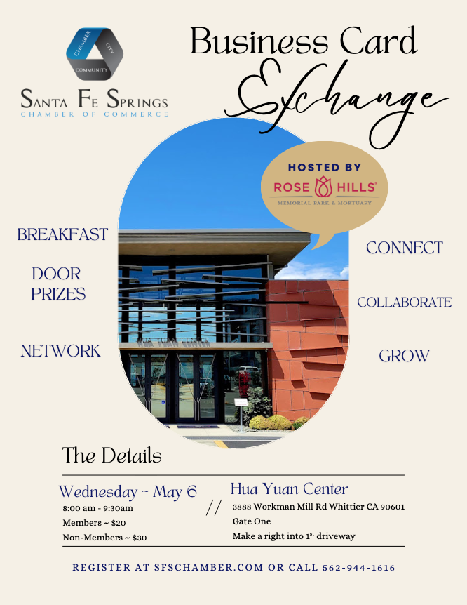 Slide 12025 Santa Fe Springs Chamber Golf Tournament at the Hacienda Golf Club Slide 22025 Santa Fe Springs Chamber Golf Tournament at the Hacienda Golf Club Slide 32025 Santa Fe Springs Chamber Golf Tournament at the Hacienda Golf Club Slide 42025 Santa Fe Springs Chamber Expo at Heritage Park Slide 52025 Santa Fe Springs Chamber Expo at Heritage Park Slide 62025 Santa Fe Springs Chamber Expo at Heritage Park Welcome To Santa Fe Springs Chamber of Commerce Utilizing business and residents, the Santa Fe Springs Chamber of Commerce is a voluntary organization that seeks to build a better community through their programs and projects. Read More About Santa Fe Springs Chamber of Commerce More Info Santa Fe Springs Chamber, City and Community partnering for success New Members Join the Chamber Events Chamber Events Community Events Business Marketplace Refer a New Member Chamber Store Community Job OpeningsChamber NewspaperChamber AdvertisingCity of Santa Fe Springs Events About YEF CHOICES® Mentoring Scholarships Featured Chamber Events May 2026 Rose Hill FlyerMore Info2026 Golf Flyer with InfoMore Info View Full Calendar Major Investors SFS Chamber Member Map Maps Home USA Map Restaurants Search Search by Location Cities