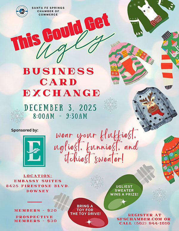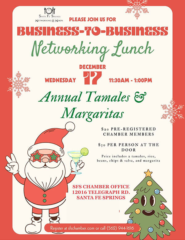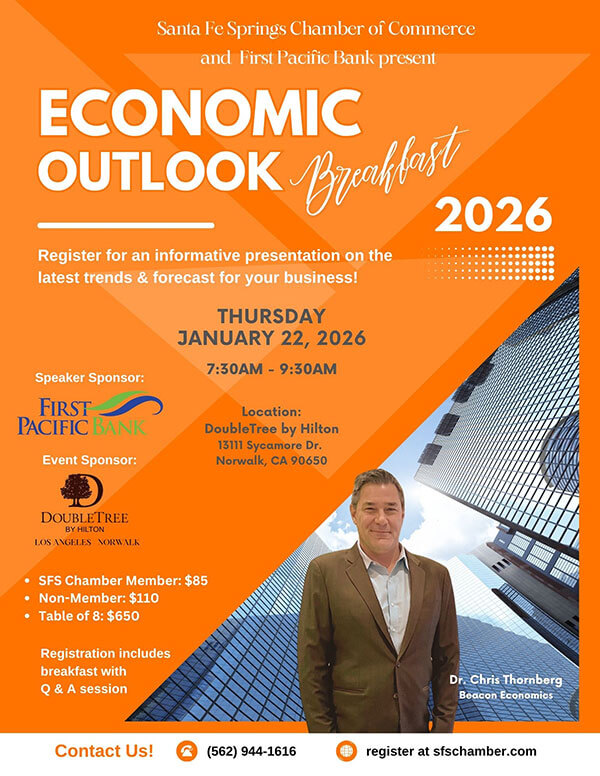 Slide 12025 Santa Fe Springs Chamber Golf Tournament at the Hacienda Golf Club Slide 22025 Santa Fe Springs Chamber Golf Tournament at the Hacienda Golf Club Slide 32025 Santa Fe Springs Chamber Golf Tournament at the Hacienda Golf Club Slide 42025 Santa Fe Springs Chamber Expo at Heritage Park Slide 52025 Santa Fe Springs Chamber Expo at Heritage Park Slide 62025 Santa Fe Springs Chamber Expo at Heritage Park Welcome To Santa Fe Springs Chamber of Commerce Utilizing business and residents, the Santa Fe Springs Chamber of Commerce is a voluntary organization that seeks to build a better community through their programs and projects. Read More About Santa Fe Springs Chamber of Commerce More Info More Info More Info Santa Fe Springs Chamber, City and Community partnering for success New Members Join the Chamber Events Chamber Events Community Events Business Marketplace Refer a New Member Chamber Store Community Job OpeningsChamber NewspaperChamber AdvertisingCity of Santa Fe Springs Events About YEF CHOICES® Mentoring Scholarships Featured Chamber Events Slide 1More InfoSlide 2More InfoSlide 2More Info View Full Calendar Major Investors SFS Chamber Member Map Maps Home USA Map Restaurants Search Search by Location Cities